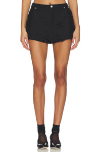 - Self: 100% cotton Lining: 98% recycled polyester 2% spandex - Made in China - Dry clean - Zip fly with button closure - Slant pocket styling - Twill textile - Floral eyelet design - Skort measures approx 11" in length - Revolve Style No. FORL-WF60 - Manufacturer Style No. CBS2009-FA25