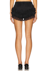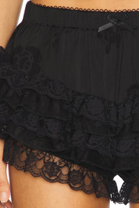 - 98% viscose 2% elastane - Hand wash cold - Pull-on styling with elastic waistband - Front tonal bow detail - Midweight jacquard fabric with ruffled lace trim - Item not sold as set - Shorts measure approx 10" in length - Revolve Style No. FORL-WF49 - Manufacturer Style No. SKSP2054-SP25-BLACK