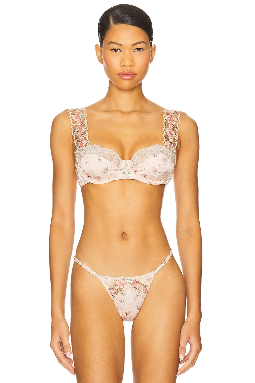 - Self 1: 96% recycled polyester 4% elastane Self 2: 100% polyamide Self 3: 100% polyester - Hand wash - Back hook and eye clasp closure - Adjustable shoulder straps - Unpadded cups with underwire - Satin fabric with lace accent - Item not sold as a set - Revolve Style No. FORL-WI507 - Manufacturer Style No. SKBR2106-FA25