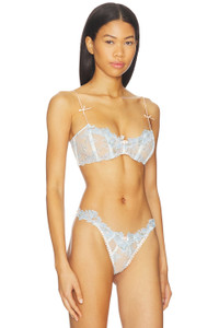 - Self: 100% polyester Contrast fabric: 98% polyester 2% other fiber - Made in China - Hand wash - Fully boned front with no underwire - Mesh and lace fabric - Hook and eye closure - Adjustable straps - Revolve Style No. FORL-WI554 - Manufacturer Style No. SKBR2142-HO25-BLUE