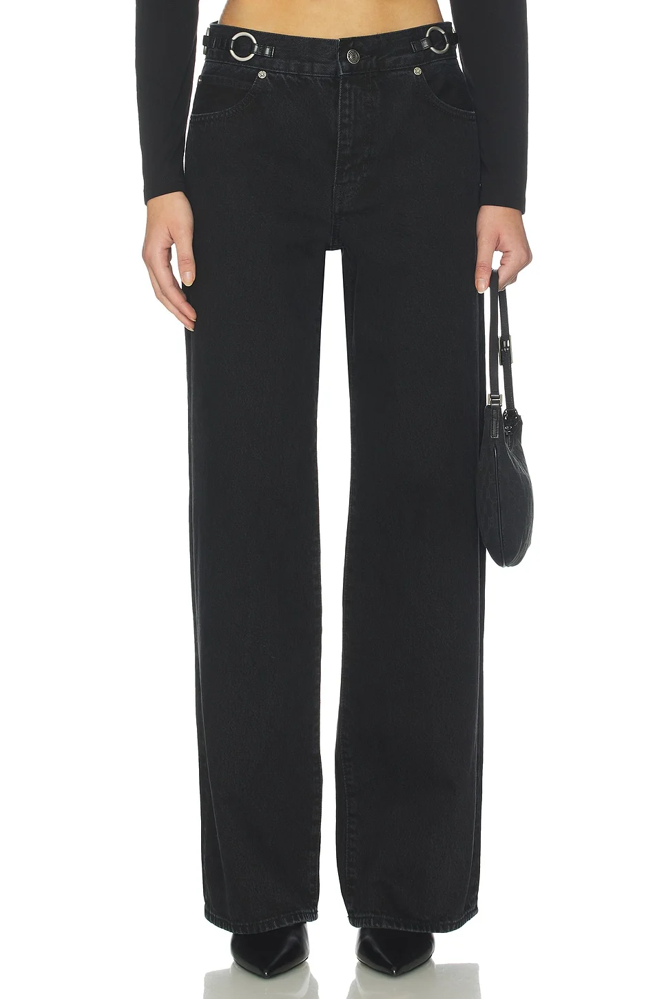- Body: 100% cotton Contrast: 100% leather Lining: 35% polyester, 35% cotton, 30% recycled polyester - Made in Turkey - Clean professionally - Zip fly closure - Heavyweight denim fabric.5-pocket styling - O-ring belt accents.20" at the leg opening - Revolve Style No. FAME-WJ476 - Manufacturer Style No. 2033RG659