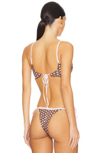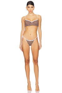 - 80% nylon 20% spandex - Made in Colombia - Hand wash - Back tie-up closure - Adjustable shoulder straps - Unpadded cups with underwire - Ruffle design at trim Item not sold as a set - Revolve Style No. FRBI-WX1267 - Manufacturer Style No. 10475NS