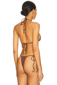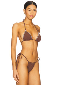 - Self: 92% polyamide 8% spandex Lining: 80% nylon 20% spandex - Hand wash - Unpadded cups - Halterneck and back tie closure - Lightweight ribbed swimwear fabric - Item not sold as a set - Revolve Style No. FRBI-WX1361 - Manufacturer Style No. 10168RB