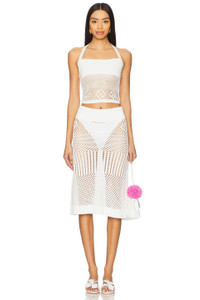 - 100% cotton - Hand wash recommended - Unlined - Pull-on styling - Midweight crochet fabric - Item not sold as a set Garment is intentionally sheer, undergarments will show through - Please note undergarment not included - Skirt measures approx 29" in length - Revolve Style No. FRBI-WQ42 - Manufacturer Style No. 21143CH