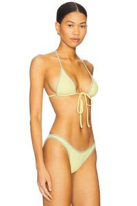 - 80% nylon 20% spandex - Hand wash - Unpadded cups - Halterneck and front tie closure - Lightweight ribbed swimwear fabric - Item not sold as a set - Revolve Style No. FRBI-WX1362 - Manufacturer Style No. 10500RB