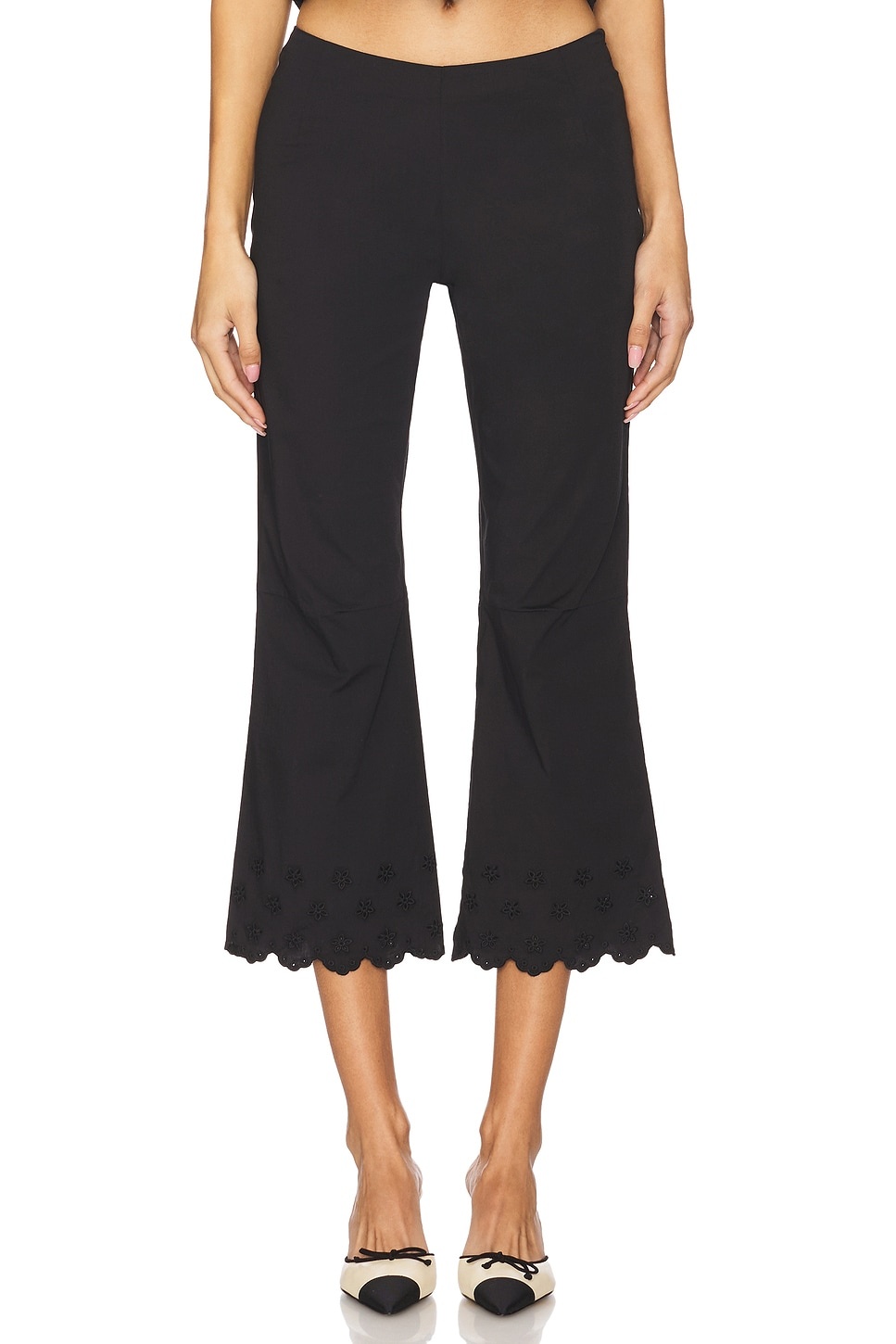 - Poplin textile - Imported - Hand wash recommended - Hidden side zip closure - Lightweight crepe fabric with scalloped hem - Item not sold as a set.16" at the knee breaks to 16.5" at the leg opening - Revolve Style No. FRBI-WP49 - Manufacturer Style No. 40132SP