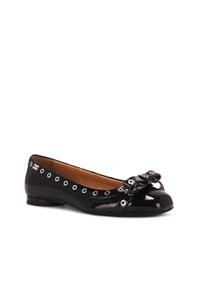 - Faux patent leather upper with faux leather sole - Made in Portugal - Slip-on styling - Faux leather lining - Bow detail and silver-tone grommets - Square toe - Revolve Style No. GANR-WZ130 - Manufacturer Style No. S2755