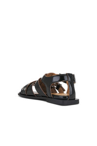 Black Feminine Buckle Strap Naplack Flat Sandals