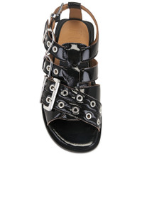 - Faux patent leather upper with manmade sole - Ankle buckle closure - Faux leather footbed and lining - Multi-buckled design with silver-tone metal hardware and grommets throughout - Revolve Style No. GANR-WZ134 - Manufacturer Style No. S2934