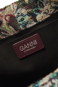 - Self: 30% polyester, 26% cotton, 25% wool, 8% acrylic, 6% polyamide, and 5% other fibers Lining: 85% recycled polyester and 15% polyester - Flap with magnetic closure - One main compartment - One slip pocket - Measures approx 15.25" W x 7.5" H x 5" D Shoulder strap with a 3.5" drop - Revolve Style No. GANR-WY136 - Manufacturer Style No. A7288