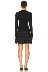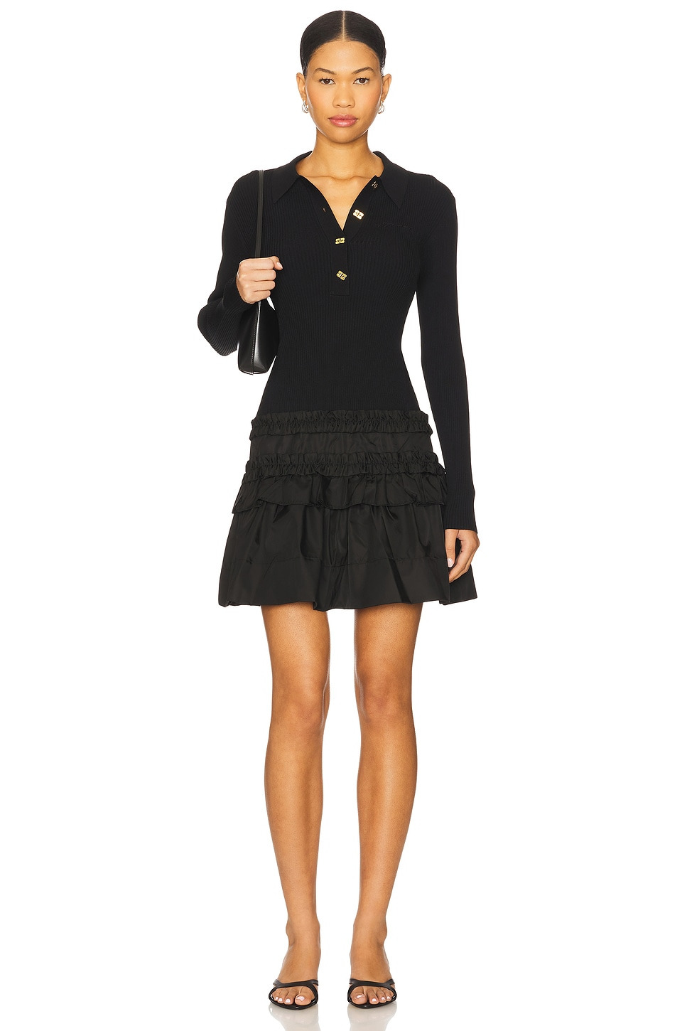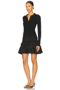 - Self: 53% viscose 31% recycled nylon 14% polyamide 2% elastane Trim: 93% recycled nylon 7% polyurethane - Hand wash - Unlined - Partial front gold-tone button closure - Ribbed jersey fabric at bodice - Taffeta fabric at skirt - Revolve Style No. GANR-WD112 - Manufacturer Style No. K2523