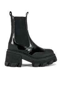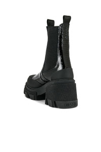 - Patent leather and textile upper with manmade sole - Made in Portugal - Pull-on styling with gore panels - Pronounced rubber welts - Approx 40mm/ 1.5 inch heel Approx 184mm/ 7.25 inch shaft - Revolve Style No. GANR-WZ66 - Manufacturer Style No. S2705