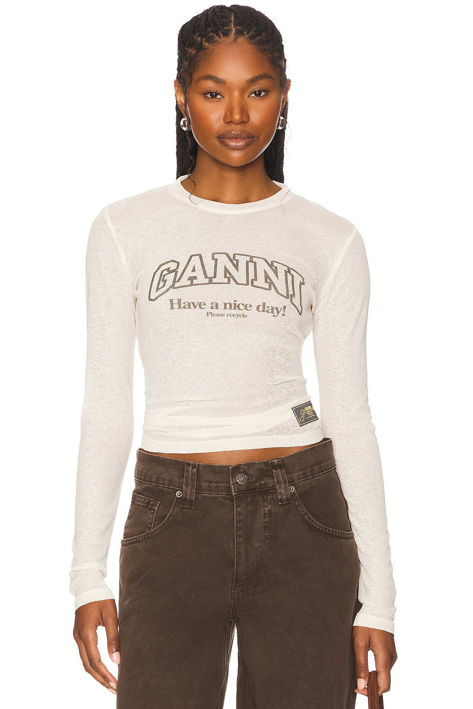 - 100% recycled polyester - Machine wash - Front graphic print - Lightweight jersey fabric - Garment is made with a semi-sheer fabric, undergarments can show through - Revolve Style No. GANR-WS147 - Manufacturer Style No. T4297
