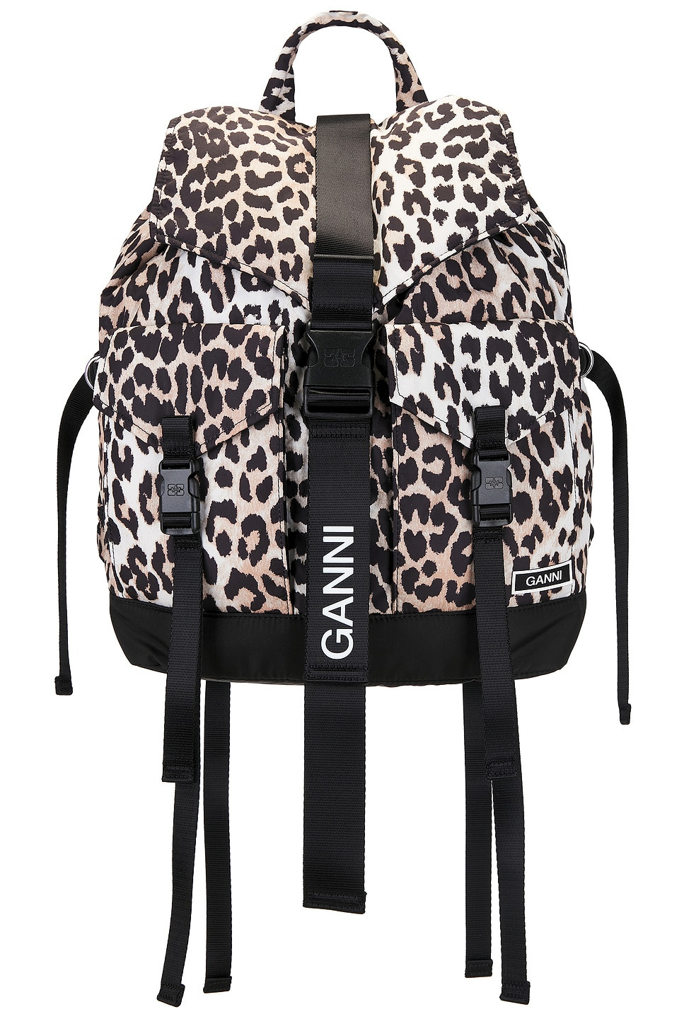 - 100% recycled polyester - Spot clean only - Flap top with interior drawstring and exterior buckle closure with logo detail - One main compartment with one interior zipper pocket - Padded adjustable shoulder straps - Front flap pockets with logo detail at front left pocket - Measures approx 14.5" W x 16" H x 14.5" D - Revolve Style No. GANR-WY123 - Manufacturer Style No. A4757