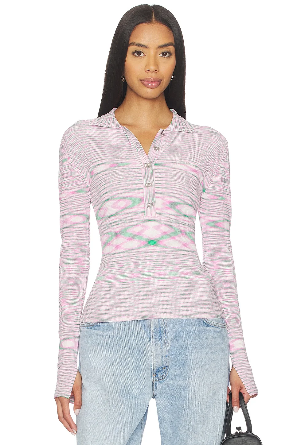 - 85% viscose, 15% polyamide - Made in China - Hand wash - Partial front button closure - Lightweight ribbed jersey-knit fabric - Split cuffs - Silver-tone metal button accents - Revolve Style No. GANR-WS166 - Manufacturer Style No. A1070072