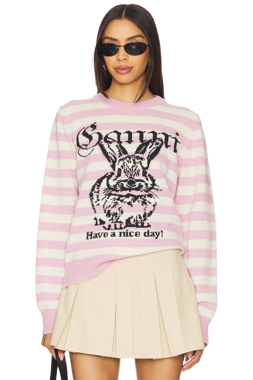 STRIPED GRAPHIC WOOL BUNNY SWEATER