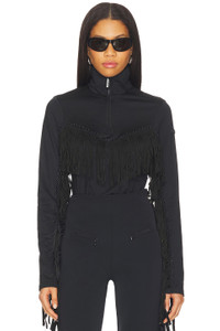 - 85% recycled polyester 15% elastane - Made in China - Machine wash cold - Pull-on styling - Quarter zip - Fringe and embellishment lined sleeves and chestline - Revolve Style No. GDBE-WS49 - Manufacturer Style No. GE30028254