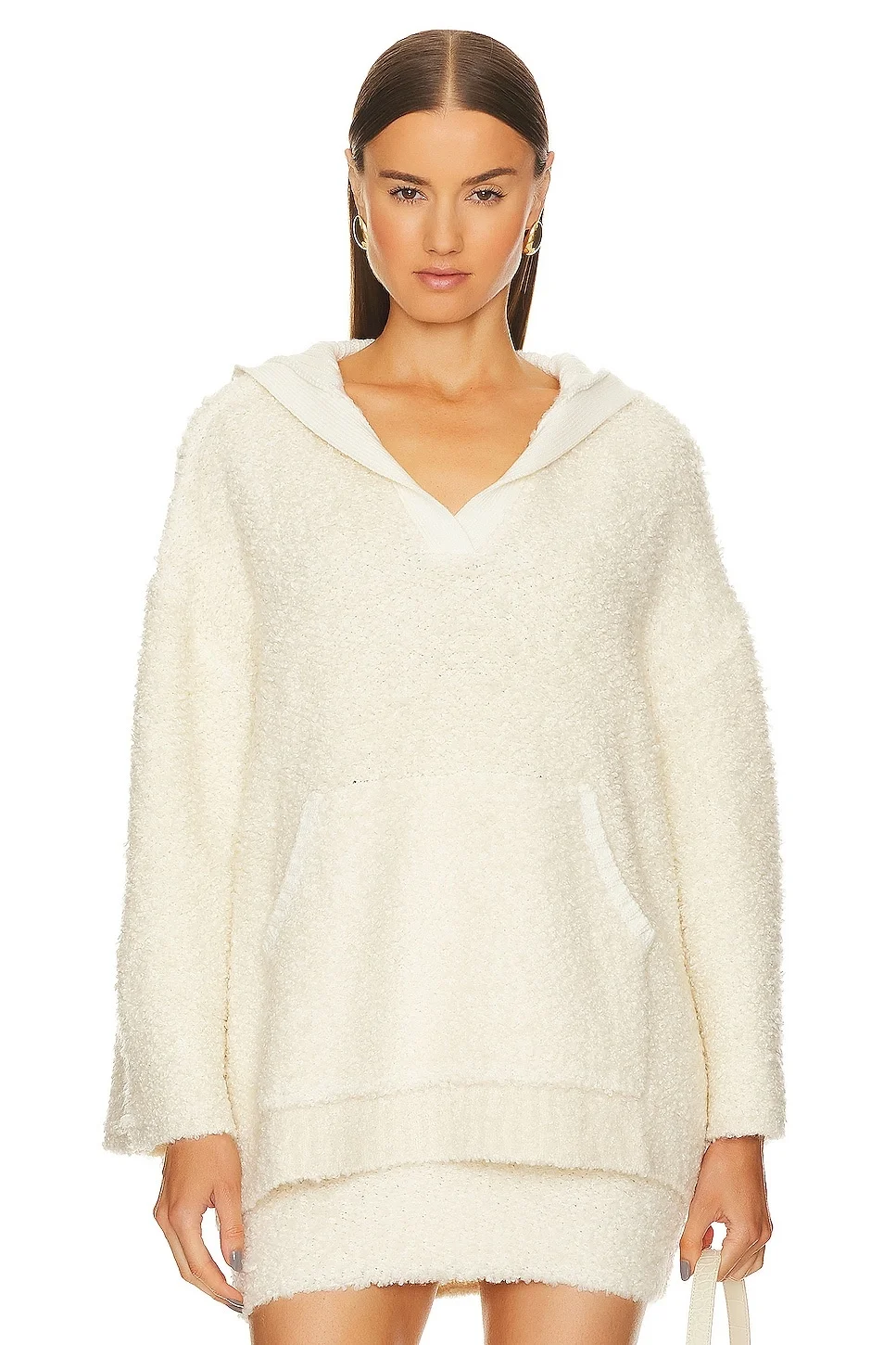 - 57% acrylic 38% wool 5% nylon - Made in China - Hand wash - Attached hoodie - Front kangaroo pocket - Notched hem - Midweight boucle knit fabric - Item not sold as a set - Revolve Style No. GRLR-WK52 - Manufacturer Style No. GRK78 H23