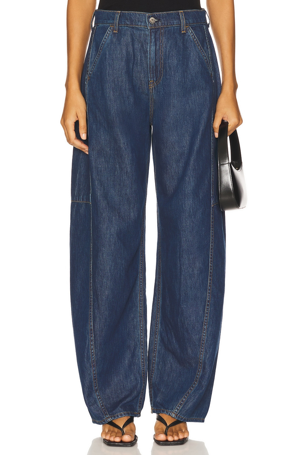 - 71% cotton 29% lyocell - Machine wash - Zip fly with button closure.4-pocket styling - Back logo patch - Barrel leg design - Lightweight rigid denim fabric.26" at the knee narrows to 20" at the leg opening - Revolve Style No. GRLR-WJ705 - Manufacturer Style No. GFJ10007 U25