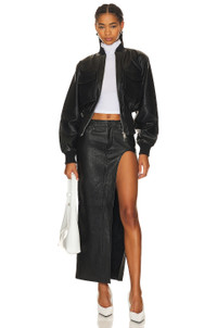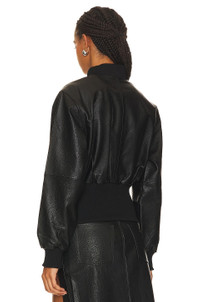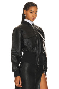 - Self: 100% cow leather Lining: 55% polyester 45% viscose - Made in China - Professional leather - Front zipper closure - Breast flap pockets - Ribbed trim - Midweight leather fabric - Revolve Style No. GRLR-WO80 - Manufacturer Style No. GROW61 F23