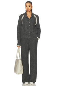 - 70% mercerized wool 30% cashmere - Imported - Dry clean recommended - Zip fly with button closure - Side slant pockets - Chunky cable knit fabric with contrast trim at pockets - Item not sold as a set - Leg opening measures approx 21" - Revolve Style No. GUER-WP2 - Manufacturer Style No. W37519JM