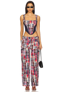 - 100% cotton - Hand wash cold - Zip fly with button closure.6-pocket styling - Patchwork design - Plaid linen fabric - Item not sold as a set.22" at the knee narrows to 19" at the leg opening - Revolve Style No. DGUI-WP34 - Manufacturer Style No. S25208W122