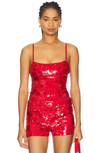- Self: 90% polyester 10% elastane Lining: 95% polyester 5% elastane - Made in China - Spot clean only - Hidden side zip closure - Midweight sequin fabric with adjustable shoulder straps - Item not sold as a set - Revolve Style No. DGUI-WS171 - Manufacturer Style No. H24102W020