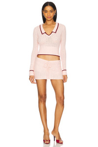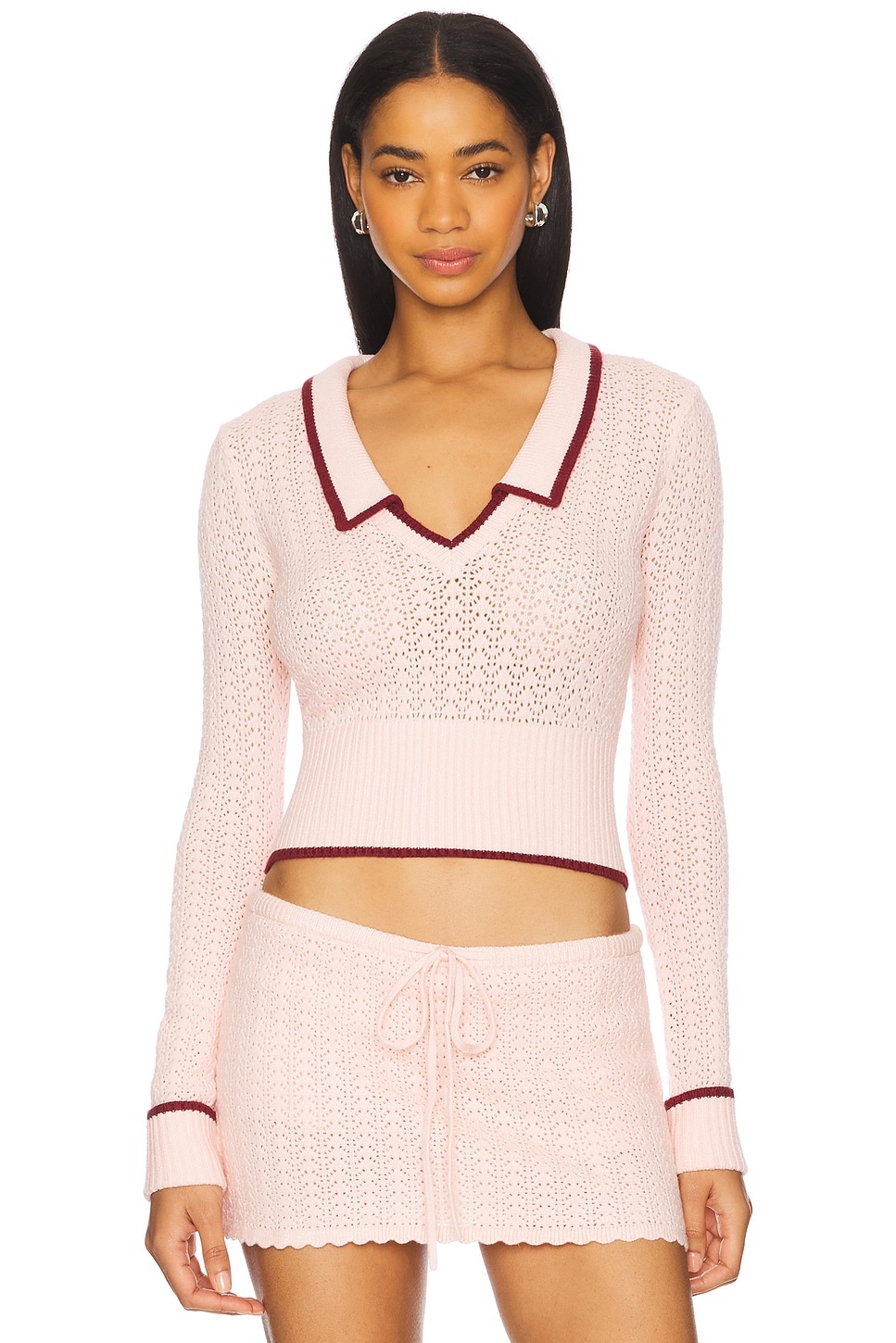 - 50% rayon 28% polyester 22% nylon - Hand wash - Pull-on styling - Ribbed trim - Cropped styling - Midweight knit fabric - Item not sold as a set - Garment is intentionally sheer, undergarments will show through. - Revolve Style No. DGUI-WS185 - Manufacturer Style No. S25108S052