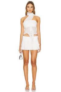 - Self: 100% polyester Lining: 95% polyester 5% spandex - Made in China - Hand wash - Fully lined - Hidden side zipper closure - Chiffon fabric - Skirt measures approx 10.5" in length - Revolve Style No. DGUI-WQ79 - Manufacturer Style No. P24311W096