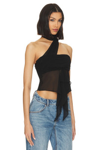 - Self: 100% polyester Lining: 95% polyester 5% spandex - Made in China - Hand wash - Hidden side hook and eye closure - Attached scarf detail - Lightweight ruched chiffon fabric - Item not sold as set - Revolve Style No. DGUI-WS101 - Manufacturer Style No. H23115W034