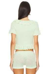 - 89% mercerized cotton 9% nylon 2% elastane - Made in China - Hand wash - Open style with dual tie closure - Drawstring cuffs and waist - Item not sold as set - Crochet knit fabric - Revolve Style No. DGUI-WS155 - Manufacturer Style No. P24115S043