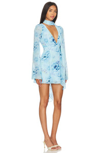 - Self: 100% polyester Lining: 95% polyester 5% spandex - Made in China - Hand wash - Fully lined - Hidden side zipper closure - Attached scarf accent - Chiffon fabric - Revolve Style No. DGUI-WD63 - Manufacturer Style No. P24418W101