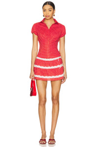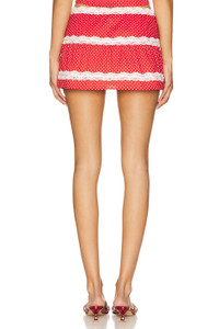 - 98% cotton 2% spandex - Made in China - Hand wash cold - Unlined - Concealed side zipper with hook and eye closure Elastic waistband - Midweight poplin fabric with rosette accents and lace trim - Item not sold as a set - Skirt measures approx 10.5" in length - Revolve Style No. DGUI-WQ91 - Manufacturer Style No. S25303W089