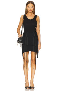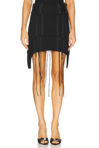 - Jersey textile - Imported - Dry clean recommended - Unlined - Pull-on styling - Midweight jersey fabric with draping fringe detailing Extended trim and zipper detail at waistband - Side seam pocket with hidden zipper closure Item not sold as set - Skirt measures approx 15.5" in length - Revolve Style No. HLNR-WQ40 - Manufacturer Style No. P02HW301