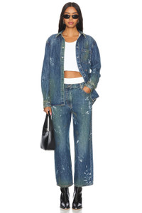 - 100% cotton - Made in China - Dry clean only - Front snap button closure - Breast pocket - Buttoned cuffs - Rigid denim with paint detail - Revolve Style No. HLNR-WS137 - Manufacturer Style No. O05DW102