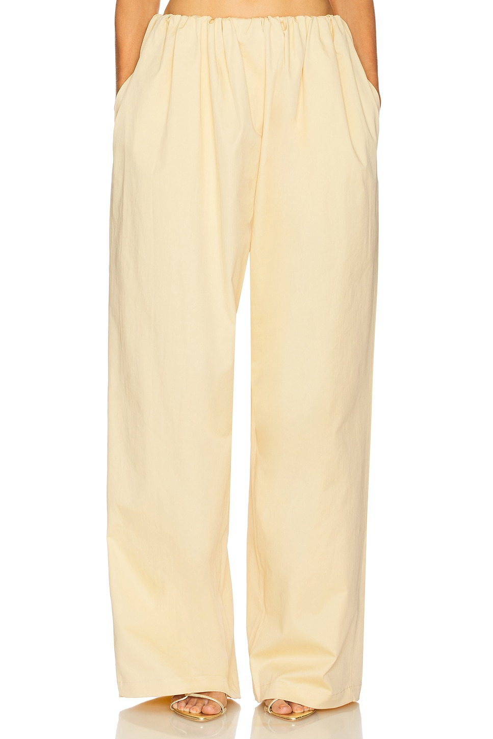 - 97% cotton 3% elastane - Dry clean only - Elasticized waistband - Side slit pockets - Wide leg fit - Twill fabric.29" at the knee and narrows to 24" at the leg opening - Revolve Style No. HLSA-WP74 - Manufacturer Style No. HEP10000 U25