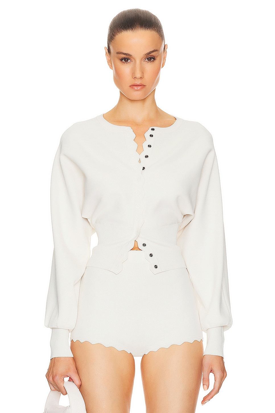 - 74% viscose 15% polyester 9% nylon 2% elastane - Made in China - Hand wash - Front snap button closure - Cinched waist - Midweight ribbed knit fabric with scalloped trims - Item not sold as a set - Revolve Style No. HLSA-WK38 - Manufacturer Style No. HEK46 S24