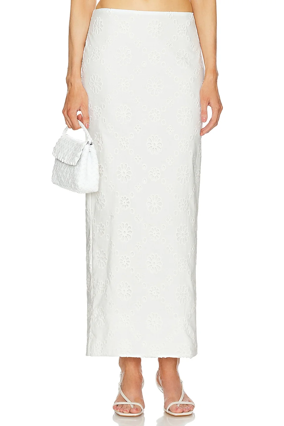 Eyelet Column Midi Skirt