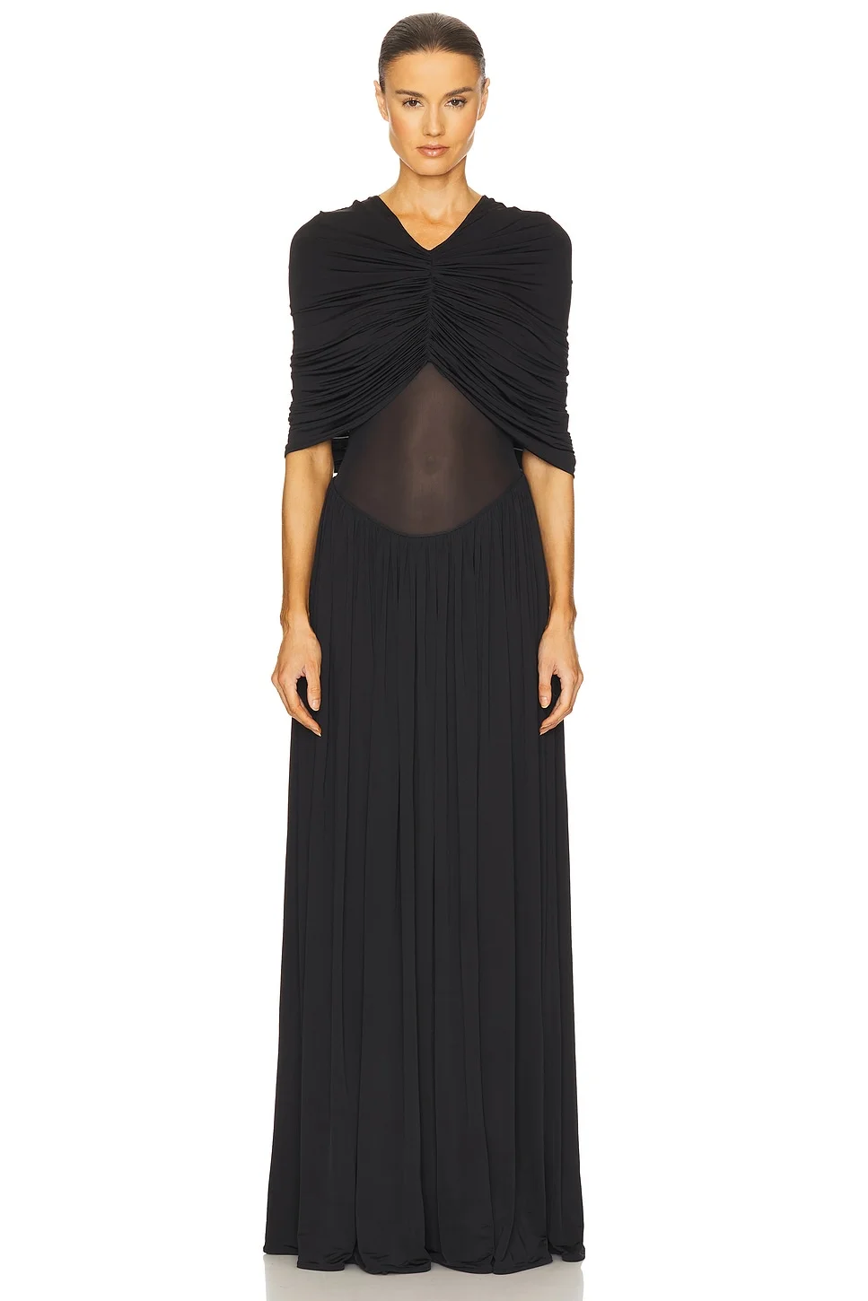 - Self 1: 95% viscose 5% elastane Self 2: 54% nylon 46% elastane - Made in China - Hand wash - Unlined - Pull-on styling - Jersey fabric with mesh panel at bodice - Revolve Style No. HLSA-WD146 - Manufacturer Style No. HED109 H24
