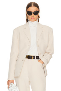 - Self: 57% polyester 36% recycled polyester 7% spandex Lining: 55% polyester 45% viscose - Made in China - Dry clean - Front button closures - Breast welt pocket and front flap pockets - Padded shoulder and buttoned cuff - Crepe twill fabric with darted waist - Item not sold as a set Runs small; consider sizing up one size - Revolve Style No. HLSA-WO11 - Manufacturer Style No. HEOW33 S24