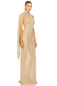 - 80% viscose 20% nylon - Dry clean only - Unlined - Pull-on styling with wraparound scarf design - Open back - Lightweight knit fabric - Garment is made with a semi-sheer fabric, undergarments can show through - Revolve Style No. HLSA-WD224 - Manufacturer Style No. HED10014 U25