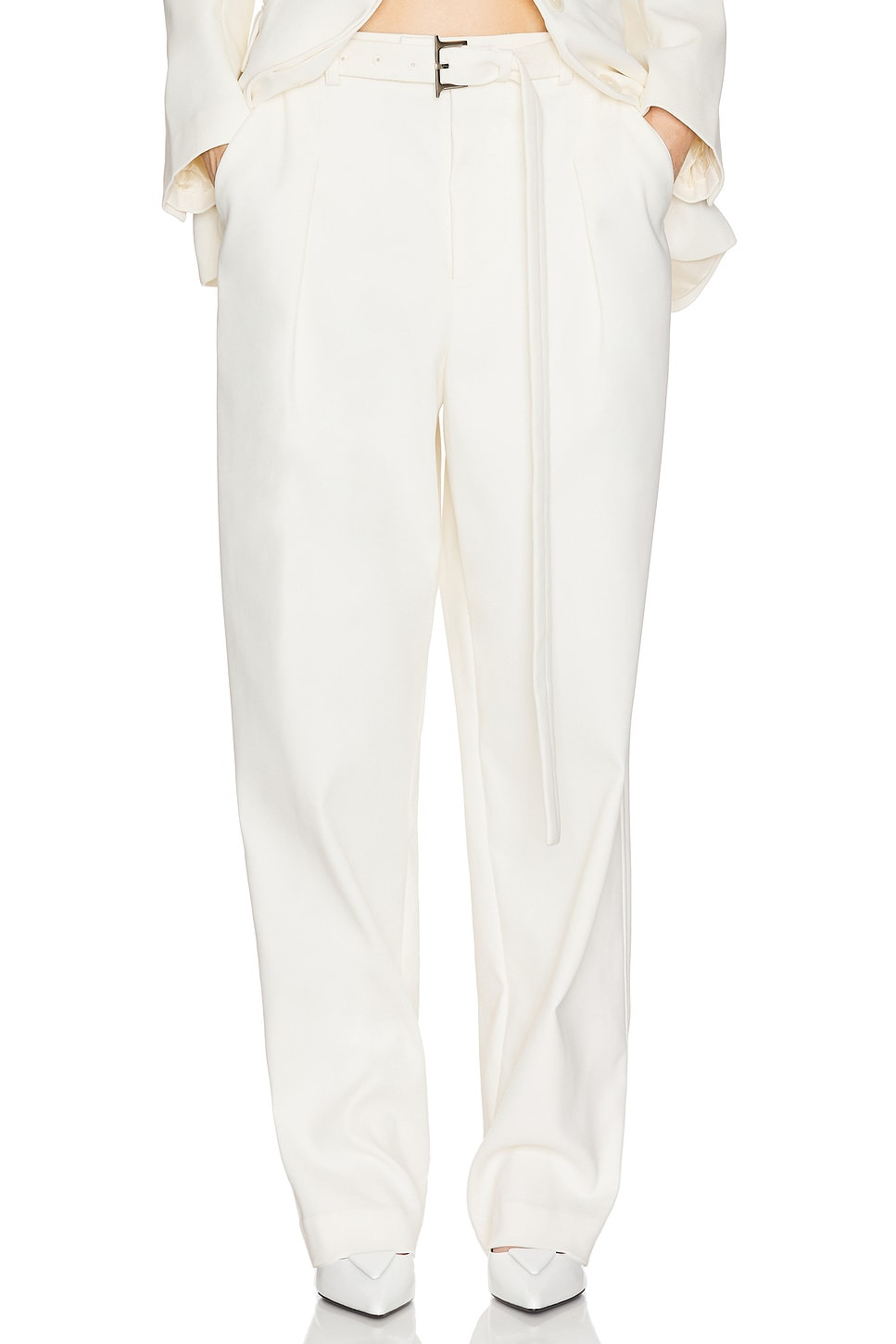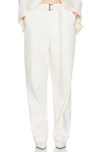 - 58% nylon 39% cotton 3% elastane - Made in China - Dry clean only - Button fly with hook and eye closure.4-pocket styling - Front pressed pleat design - Crepe fabric.19" at the knee narrows to 17" at the leg opening - Revolve Style No. HLSA-WP55 - Manufacturer Style No. HEP36 F24