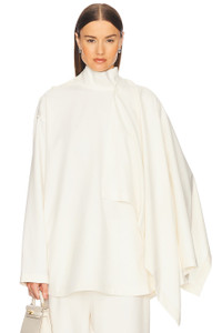 - 65% polyester 24% viscose 9% wool 2% elastane - Made in China - Dry clean only - Shoulder button closure - Detachable scarf design - Mockneck design - Side slit pockets Twill fabric - Revolve Style No. HLSA-WS149 - Manufacturer Style No. HES108 H24