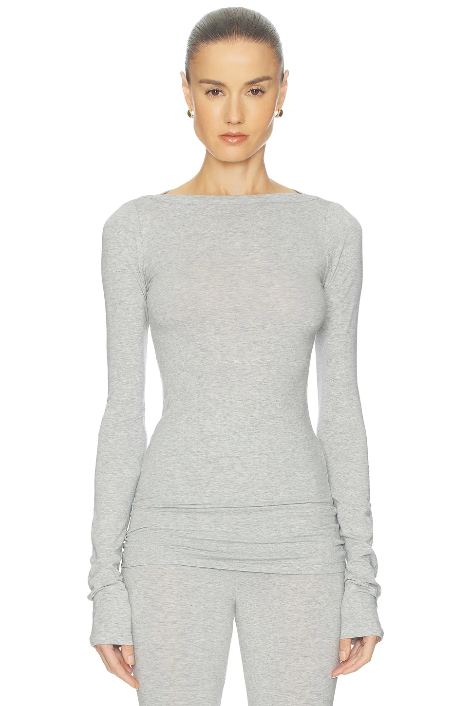- 63% cotton 27% lyocell 10% elastane - Made in China - Hand wash cold or dry clean - Pull-on styling - Straight neckline - Extra long sleeves - Lightweight material - Revolve Style No. HLSA-WS214 - Manufacturer Style No. HES10029 H25