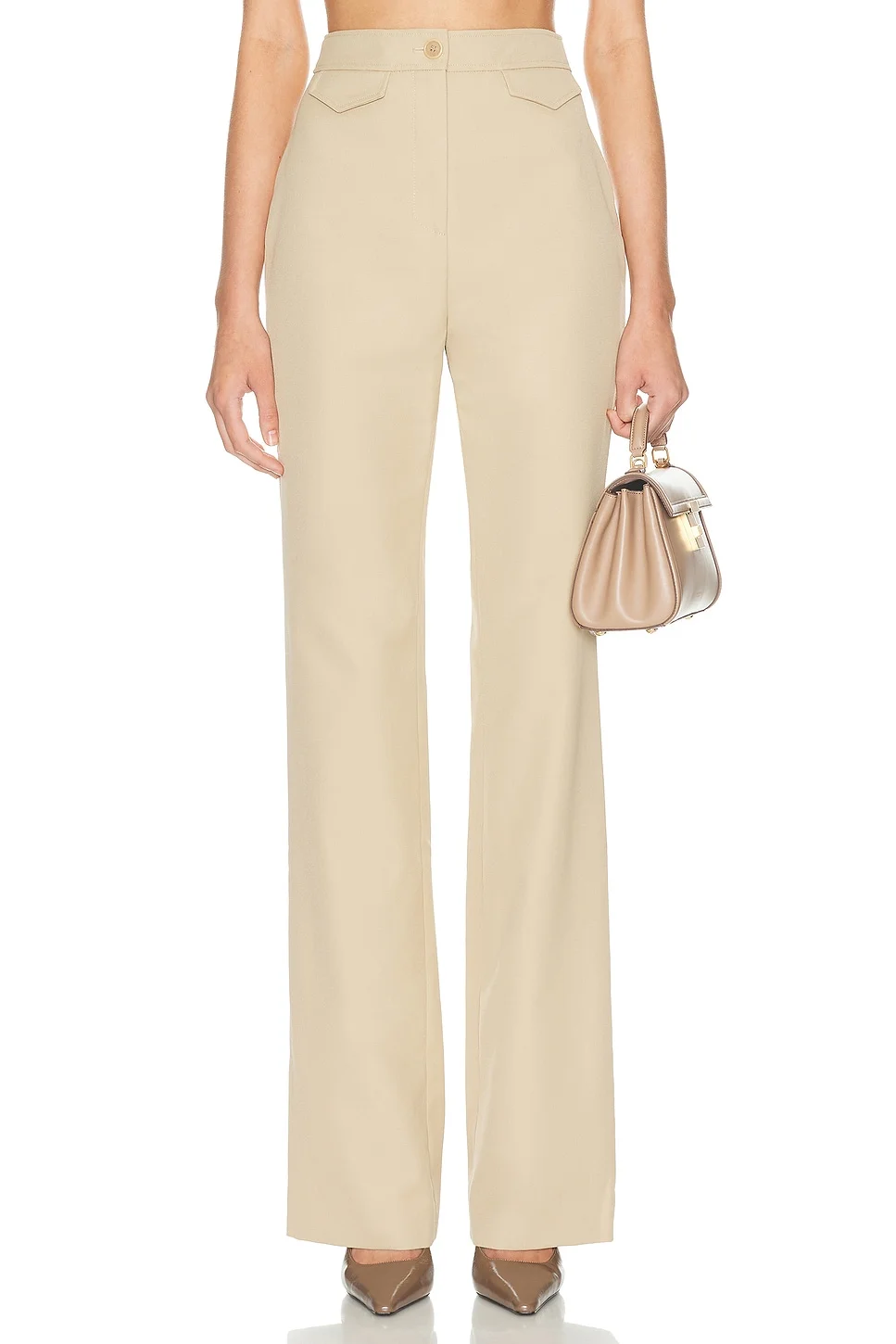 - 70% polyester 30% lenzing ™ ecovero ™ viscose - Dry clean only - Zip fly with button closure - Front flap pockets - Back welt pockets - High-waisted fit - Twill fabric Item not sold as a set.18" at the leg opening - Revolve Style No. HLSA-WP88 - Manufacturer Style No. HEP10010 F25