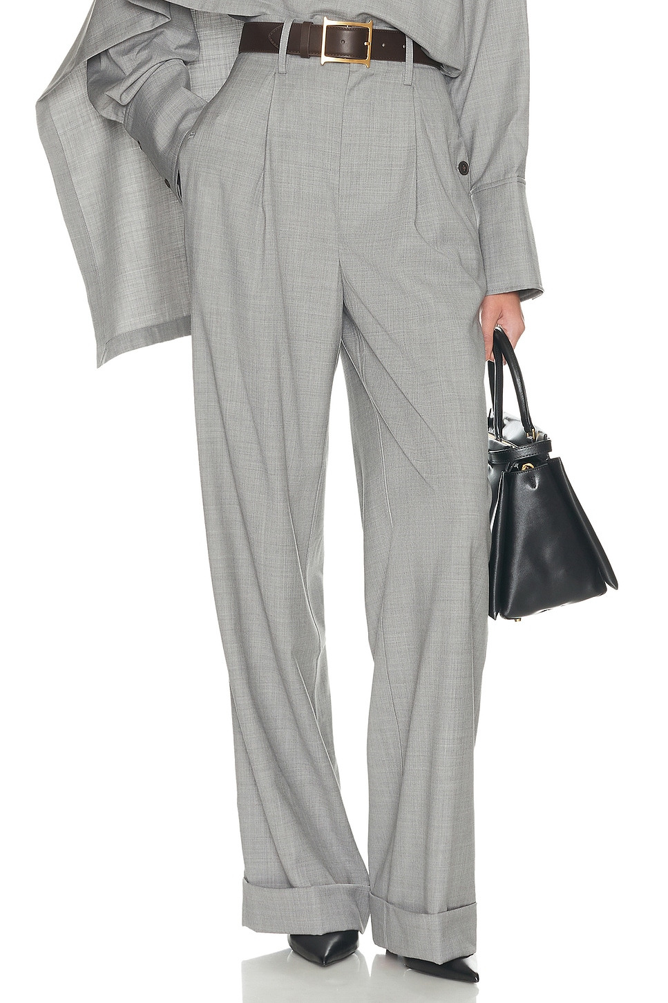 - 100% wool - Dry clean only - Zip fly with hook and bar clasp closures.4-pocket design with button closures - Adjustable buckles at back waist - High-waisted fit with front pleated detail - Suiting fabric - Item not sold as a set - Revolve Style No. HLSA-WP81 - Manufacturer Style No. HEP10017 F25