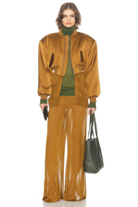 - 100% polyester - Hand wash - Hidden front zipper closure - Heavy padding at shoulders - Side flap pockets with button closures - Cropped fit - Satin fabric with padding and ribbed knit trim - Revolve Style No. HLSA-WO62 - Manufacturer Style No. HEOW10009 F25