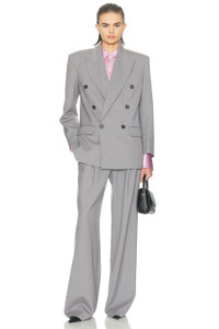 - Self: 50% wool 48% polyester 2% elastane Lining: 55% polyester 45% viscose - Dry clean only - Front double-breasted button closures - Structured padding at shoulders - Front flap pockets - Buttoned cuffs - Suiting fabric - Revolve Style No. HLSA-WO66 - Manufacturer Style No. HEOW10013 F25