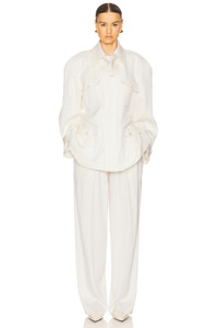 - Self: 67% naia™ acetate 23% viscose 10% wool Lining: 100% polyester - Dry clean only - Hidden front button closure - Structured padding at shoulders.4-front flap pockets - Tonal belt - Belted cuffs - Twill fabric - Revolve Style No. HLSA-WO58 - Manufacturer Style No. HEOW60 U25