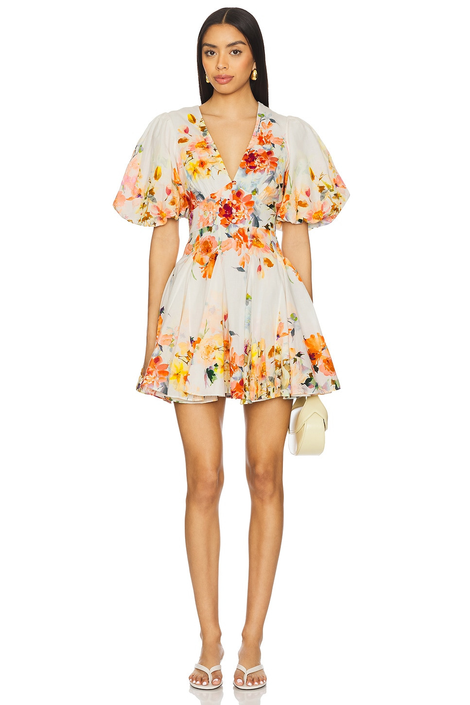 - Self: 55% linen 45% cotton Lining: 100% cotton - Made in India - Dry clean only - Fully lined - Hidden back zip closure - Elastic cuffs with puffed sleeve styling - Partial smocked design at back - Revolve Style No. BENE-WD369 - Manufacturer Style No. HN-SABA-960